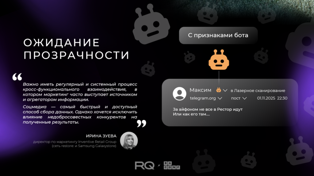 Но и здесь прогресс не стоит на месте: Brand Analytics уже внедряет алгоритмы распознавания ботов и маркировку подозрительных сообщений.